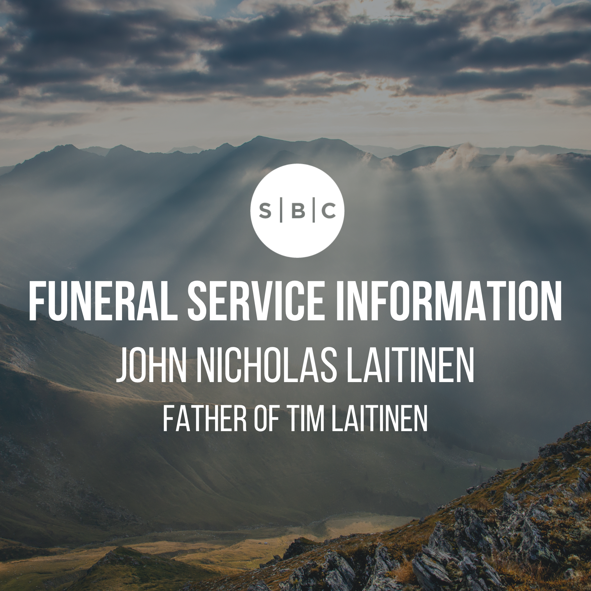 Our thoughts and prayers are with the Laitinen family in the loss of Tim’s father, John, who went to be with the Lord on Tuesday, March 24, 2026.