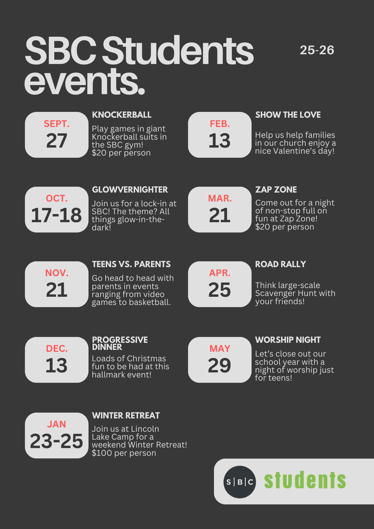 Our mission is to help students learn to glorify God and make disciples through intentional relationships and sacrificial service.